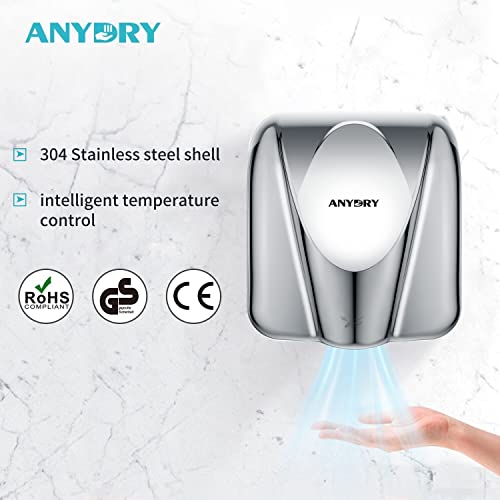 Anydry 2812 Professionale Asciugamani Elettrico Automatico con fotocellula, Design Elegante Finitura in Acciaio Inox Asciugatura Rapida 7-10 Secondi,1650W(Lucidato)