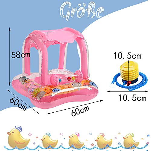 【Tendalino regolabile e staccabile Con pompa ad aria】 Questo anello da nuoto per bambini è dotato di tendalino parasole, montaggio e smontaggio. Facile da gonfiare e sgonfiare, ultraleggero e poco ingombrante per il trasporto o lo stoccaggio, la tenda da sole può essere regolata su una copertura completa o su un mezzo cappuccio per evitare la pelle sottile del bambino. Se giochi con tempo nuvoloso o di sera, puoi togliere il cielo.