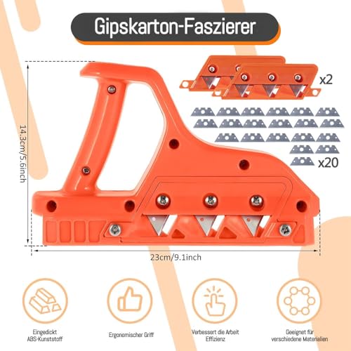 Anyingkai Piano a Mano in Cartongesso,Pialla Cartongesso,Smussatore Cartongesso,Pialla 45 e 60 Gradi Cartongesso,Raspa Cartongesso,Taglierina Rapida per Cartongesso Viene Fornito con 20 Lame