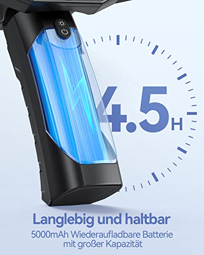 Batteria ricaricabile da 5000 mAh: il design ergonomico della maniglia e la fotocamera a tubo leggero consentono il funzionamento con una sola mano. La batteria integrata da 5000 mAh della fotocamera a tubo endoscopio dura fino a 4,5 ore, cavo USB incluso.