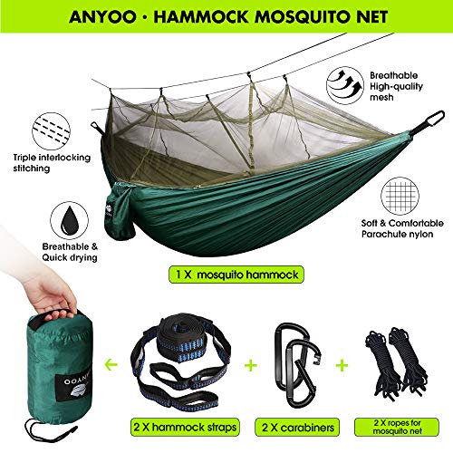 Anyoo Amaca da Campeggio con zanzariera in Nylon con Paracadute, Leggero Lettino da Viaggio Portatile per l'escursionismo con Zainetto da Viaggio per Corde. Moschettoni Inclusi