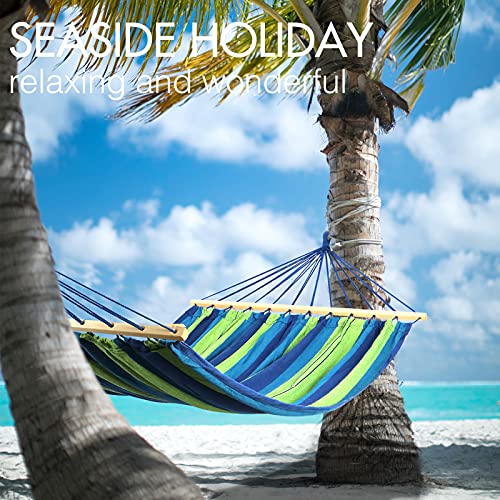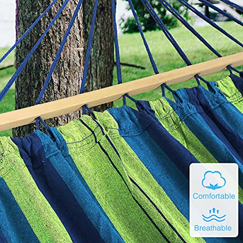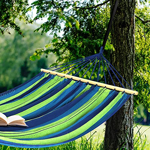 Anyoo Amaca da giardino in cotone con barre di diffusione in legno da 120 cm, Amaca singola compatta portatile con borsa da viaggio perfetta per patio all'aperto sulla spiaggia