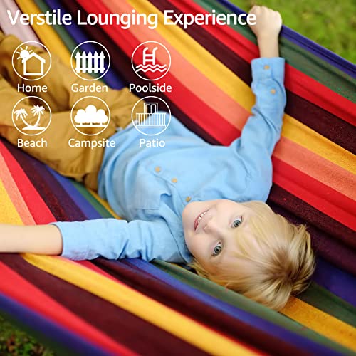 Anyoo Amaca da Giardino in Cotone Tessuto Comodo con Cinghie Rispettose degli Alberi per Appendere, Durevole Amaca Portatile con Borsa da Viaggio per Campeggio, Esterno/Interno, Balcone, Patio