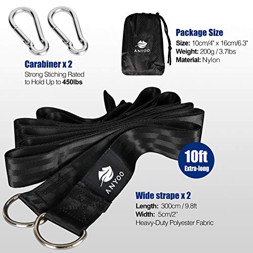 Anyoo Cinghie per Amaca, Resistenti e Lunghe 300 cm, kit da Appendere con Moschettoni in Acciaio, Facili e Veloci, per Giardino, Cortile, Parco, Campeggio, Attività All'aperto