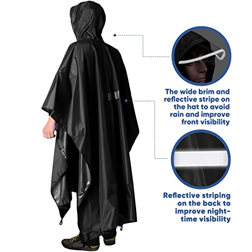 Anyoo Impermeabile Poncho Pioggia Leggero Multiuso Impermeabile con Cappuccio Packable Telo Riparo a Terra Foglio Ideale per Campeggio all'aperto Trekking Pesca Sopravvivenza, Nero, Taglia unica