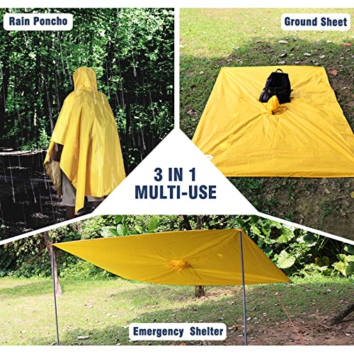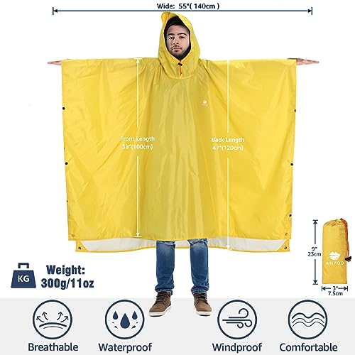 Anyoo Impermeabile Poncho Pioggia Riutilizzabile Multiuso Impermeabile Impermeabile con Cappuccio Packable Telo Riparo a Terra Foglio per Campeggio all'aperto Pesca Sopravvivenza,Giallo,Taglia unica