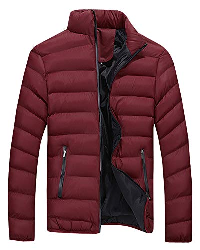 AnyuA Piumino Giacca Uomo Manica Lunga Caldo Giubbotto Giù Ultraleggeri Rosso L