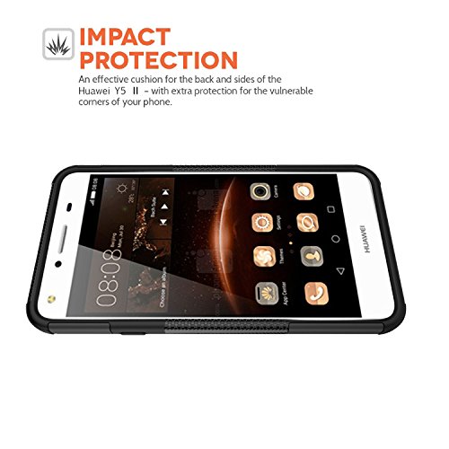 Anzhao Huawei Y5 II/Huawei Y6 II Compact Custodia Duro Shock Proof Copertura Rugged Heavy Duty Antiurto in Piedi Custodia Caso Case per Huawei Y5 II/Huawei Y6 II Compact (Nero)