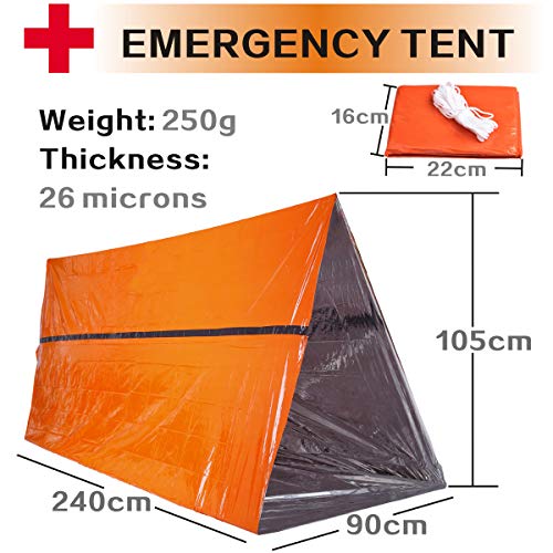 AOASO - Kit di sopravvivenza di emergenza 7 in 1 per 2 persone, preparazione di emergenza con tenda di emergenza, coperte di emergenza, sacco a pelo e braccialetto di sopravvivenza in paracord