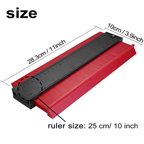 Nome dell'articolo: AOBETAK Profilo Gauge 10 pollici. Dimensioni: 28,3 x 10 cm. Dimensioni righello: 25 cm. Colore: rosso. Unità di misura: CM/IN. Ideale per copiare forme e contorni irregolari, ideale per gli angoli di forma dispari per tagliare correttamente i modelli.
