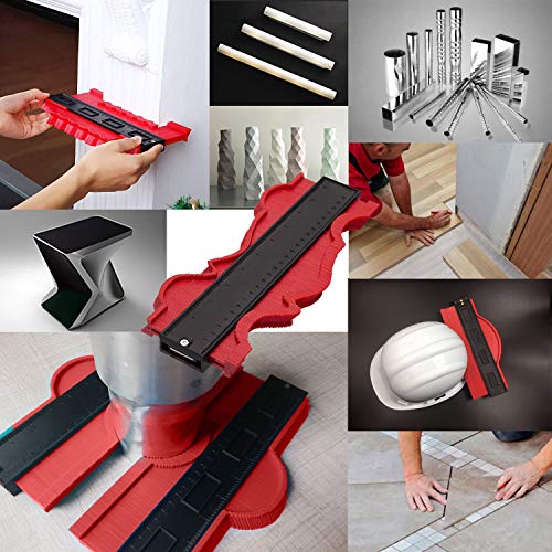 Aobetak - Calibro per profilo, 25 cm, per bobinare tubi, telai circolari, profilo in legno, profilatura professionale e precisa per piastrelle, legno, piastrelle, rosso