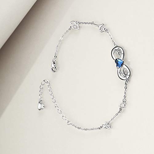 AOBOCO Bracciale infinito in argento sterling con cristalli blu, gioielli per cavalli, regali di compleanno per ragazze, donne, figlie, amanti dei cavalli.