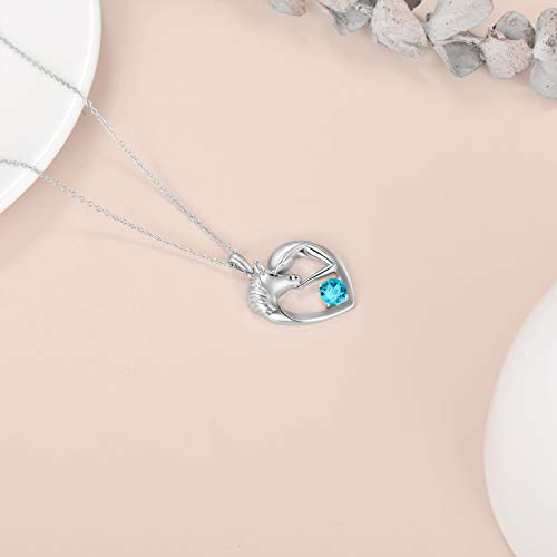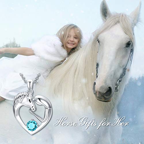 AOBOCO Collana da cavallo in argento 925 Ragazze, gioielli da cavallo per ragazze e donne (zircone blu simulato)