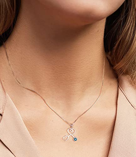 AOBOCO Collana Donna Argento 925 con Cristalli Ciondolo a Forma di Stetoscopio Gioielli Regali per Medico Infermiera Studenti di Medicina e per Lei Anniversario