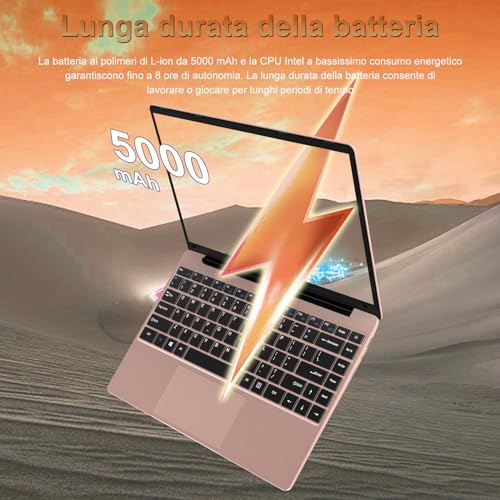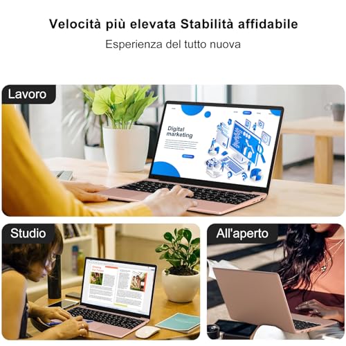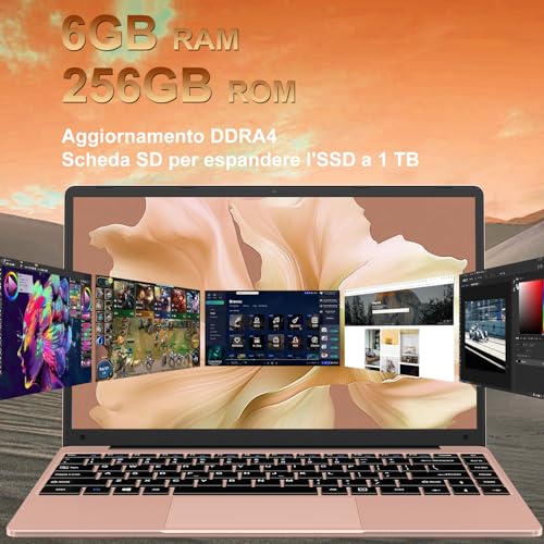 【STOCCAGGIO E MEMORIA】 PC Portatile La RAM da 6 GB aumenta le tue prestazioni. Inoltre, disco rigido con SSD da 256 GB, molto spazio e velocità di lettura e scrittura più elevate per documenti, foto e video. Puoi espandere la memoria tramite la scheda TF fino a 512 GB o aggiornare l'SSD a 1 TB per garantire ampio spazio per gestire la maggior parte delle app e più flussi di lavoro.