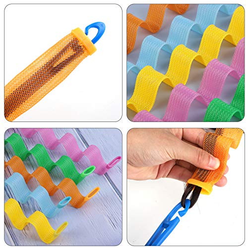 Confezione: il kit per acconciature a spirale include 30 bigodini a spirale di 45 cm di lunghezza, con 5 colori, rispettivamente giallo, rosa, arancione, blu e verde, e 3 ganci blu e vi forniremo anche 1 borsa per riporre e sistemare ogni giorno.