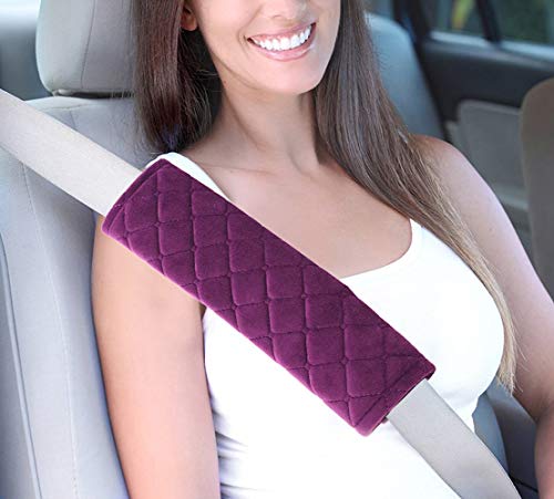 Aoderda - Set di 4 cuscinetti per cintura di sicurezza per auto, morbidi e confortevoli, per proteggere il collo e le spalle (viola)