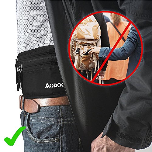 Aodoor Antifurto Marsupio, Documenti Viaggio Portafoglio, cintura regolabile, Protettive RFID per Carte di Credito e Passaporto, Materiale Traspirante di Qualità, Proteggi i Tuoi Oggetti Preziosi