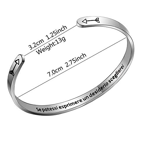 Aoeboz Braccialetto Donna Polsino Bracciale Acciaio"Se Potessi Esprimere un Desiderio Sceglierei"con incisione Personalizzato Gioielli Regolabile Regali di Ispirazione