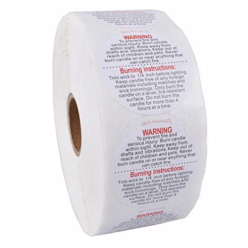 AOFOX Etichette di avvertenza per Candele 1500 Pezzi, Avvertimento di Sicurezza per contenitori Rotondi da 1,5 Pollici per barattoli di Candela per Candele e barattoli di Candele Fai-da-Te (Bianca)