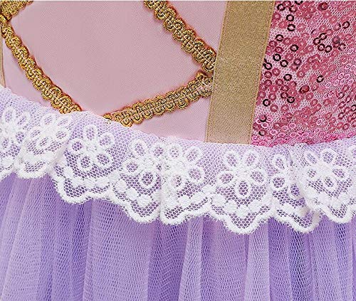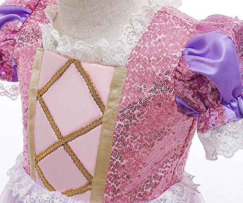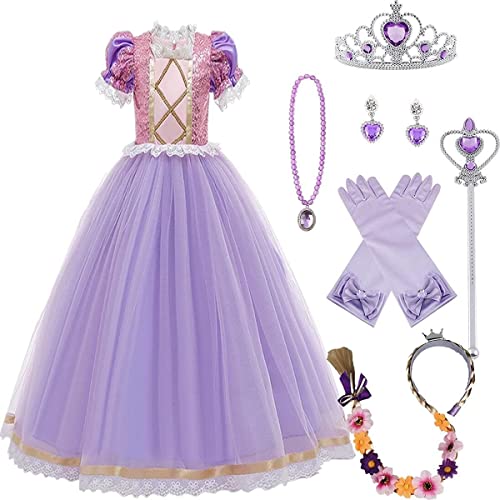 AOGD - Vestito da principessa, a maniche corte, per travestimento, ideale come regalo di compleanno, feste, travestimenti, Rapunzel