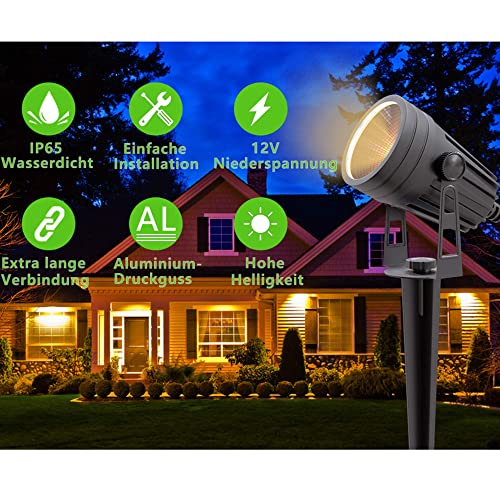 Aogled Luci da giardino a LED 3W COB Lampada da esterno impermeabile IP65 12V a bassa tensione bianco caldo 3000K Illuminazione decorativa per percorso giardino (confezione da 4)