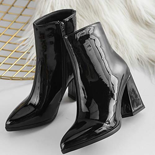AOGOTO Donna Wellington Ankle Boots Specchio a Punta in Pelle Laccata Party Booties Scarpe, Nero (Nero), 41 EU