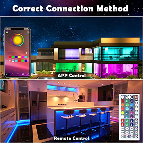 【Doppio Modo di Controllo】 Il telecomandoa 44 tasti, con una distanza di controllo fino a 8m. striscia led è controllata dall'app "HappyLighting" regolare la luminosità e il colore.