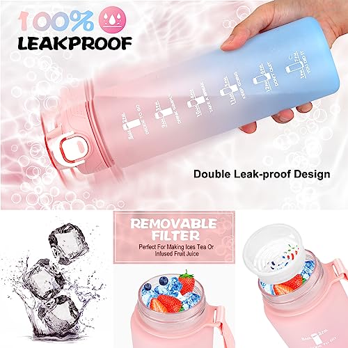 AOHAN Borraccia da 1 l, Bottiglia d'acqua Tritan Senza BPA, Motivazione Borraccia Sport con Filtro e Indicatore di Tempo, Bottiglia impermeabile con Cannuccia per Sport, Escursionismo, Scuola, Ufficio