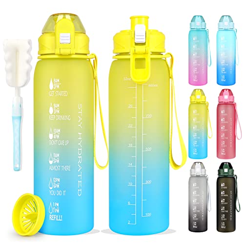 AOHAN Borraccia da 1 l, senza BPA, per sport, a prova di perdite, con indicatore del tempo e filtro per scuola, bicicletta, fitness, escursionismo