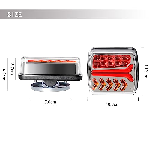 AOHEWEI Luci posteriori per rimorchio senza fili Luci posteriori per camion magnetiche a LED Senza cavo 12V Approvato ECE con spina a 7 pin per rimorchio, camion, roulotte o camion