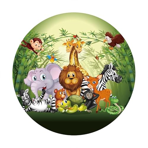 Aoihrraan 180cm Diametro Safari Nella Giungla Animali Rotondo Fotografia Sfondo Cartone Animato Foresta Animali Tropicale Verde Foglie Fondale Baby Doccia Ragazzo 1° Compleanno Festa Fotografico
