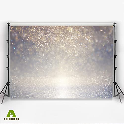 Aoihrraan 3x2m Argento Bokeh Sfondo Astratto Lucido Luci Sparkle Paillettes Sfocato Aloni Fotografia Sfondo Neonato Bambino Doccia Compleanno Festa Decorazione Matrimonio Ritratto Foto Prop