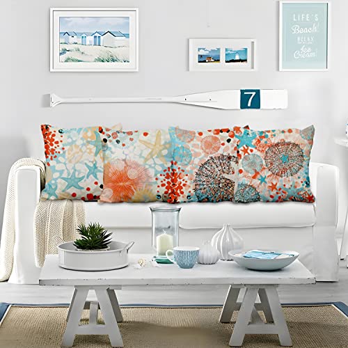 Aoihrraan 61x61cm Confezione da 4 Mare Copricuscini Divano Spiaggia Conchiglia Stella Marina Conchiglia Moderno Quadrata Federe Per Cuscini In Lino Per Estate Camera Da Letto Soggiorno Giardino Divano