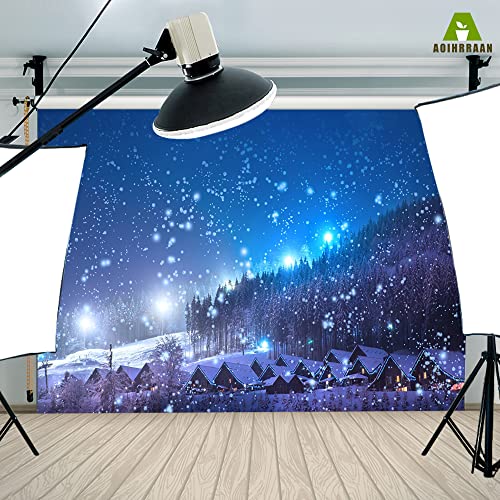 Aoihrraan 3x2,5m Villaggio di Natale Sfondo Nevicata Foresta Inverno Vista Notturna Fiaba Città Fotografia Sfondo Capodanno Natale Festa in Famiglia Decorazione Bambini Adulti Ritratto Foto Prop