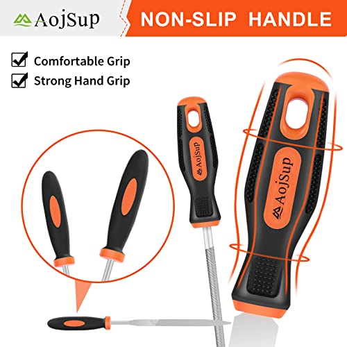 ️【AojSup 18 PEZZI SET DI LIME PER LEGNO】- Realizzato in acciaio legato T12 forgiato, questo set di lime per metallo contiene 4 lime per metallo grandi da 200 mm (piatte, semicircolari, rotonde, triangolari), 12 lime per ago da 140 mm (5,5"), 1 spazzola per la pulizia, 1 pacchetto di file.