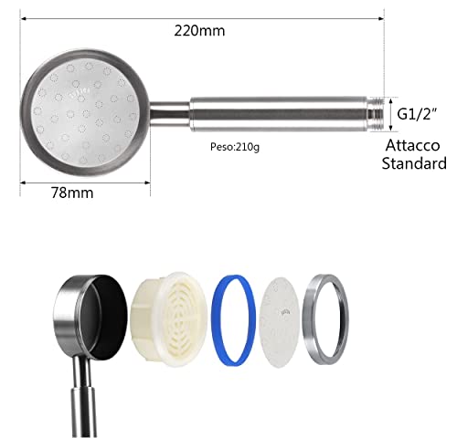 【Pressione Aumenta e Risparmio Idrico】: Piccoli piccoli fori progettati rendono l'acqua esaurita fortemente, che aiuta ad aumentare la pressione e limitare la quantità di acqua utilizzata mentre la doccia. Inoltre può risparmiare acqua fino al 30%, aiuta a ridurre la bolletta dell'acqua.