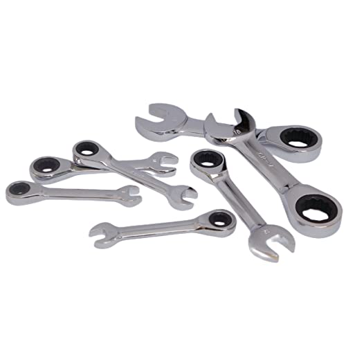 Aoktorkit Chiave a cricchetto corta da 15 mm, con combinazione tozza a cricchetto, professionale in acciaio al cromo vanadio, mini chiave a cricchetto, per la riparazione di biciclette a casa