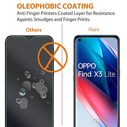 [Ritagli Precisi e Copertura Perfetta] Questa pellicola è stata progettata per proteggere esclusivamente lo schermo di OPPO Reno7/OPPO Find X3 Lite. I ritagli laser con bordo arrotondato formano un'apertura precisa per la fotocamera frontale e lo speaker offrendo una precisa copertura allo schermo. Nota: il vetro NON copre l'intero schermo ma solo l'area piatta e ciò lo rende compatibile con la maggior parte delle cover sul mercato.