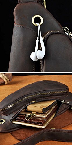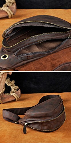 Le'aokuu Uomini Vera Pelle Borsa a Tracolla per Ciclismo Zaino con una Tracolla Marsupio Pacco 9976 (9976 Marrone scuro 2)