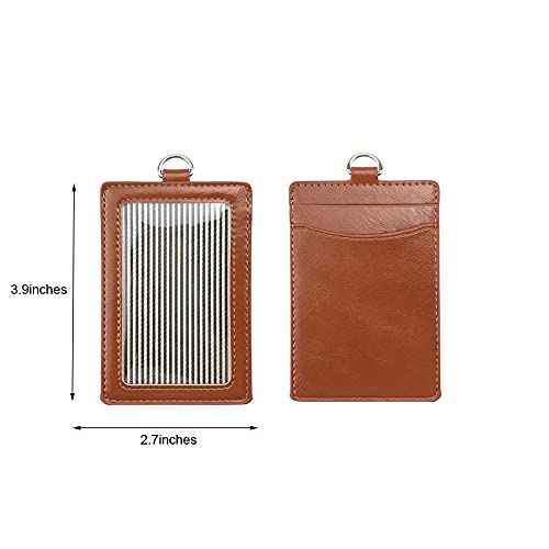 Aolaso - Porta badge con cordino retrattile per il collo, 2 lati in pelle PU (ID-Marrone)