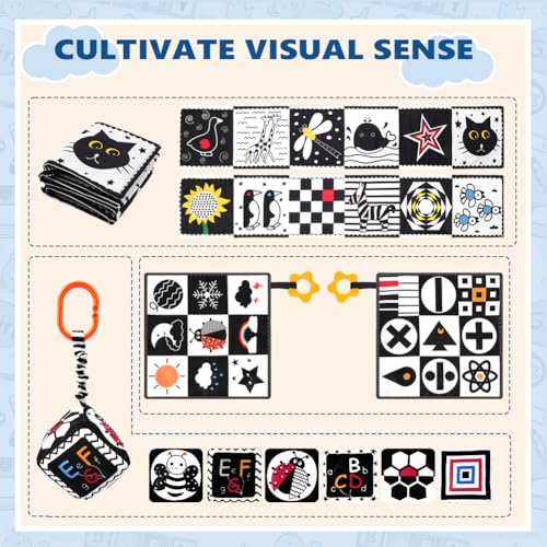 Aolso Libro di Stoffa per Neonati, Giochi Neonato 0-12 Mesi, Libri di Stoffa Interattivo, Tattile Libro per Neonati,Alto Contrasto Libro Sensoriale Neonati Giocattoli, Giocattoli Educativi Sensoriale