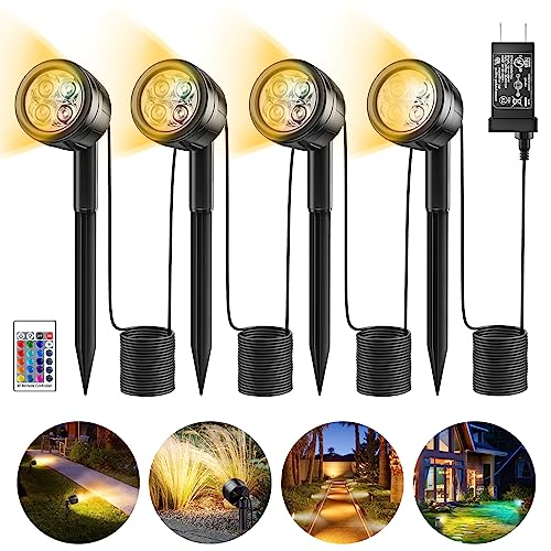 Aomdom Faretti LED da Giardino, Faretto LED da Esterno con Alimentazione, 16 Colori e 4 Modalità, Luci da Esterno Giardino Impermeabile IP65 con Picchetto da Terra per Vialetti da Giardino, 4 Pezzi