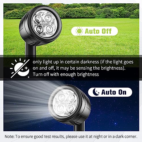 【NOTA-Sensore di luce】 Con il sensore di luce, il faretto da giardino si accenderà automaticamente di notte e si spegnerà all'alba. Si illumina solo in una certa oscurità (se la luce non si accende, potrebbe rilevare la luminosità). Per garantire buoni risultati del test, utilizzalo di notte o in un angolo buio.