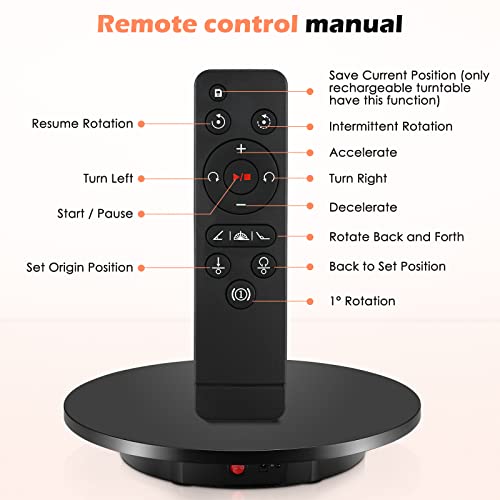 【 Espositore rotante a 360°】: questo espositore girevole da 16,5 pollici/42 cm con carico di 100 kg offre una vista a 360 gradi del prodotto. La velocità e la direzione possono essere regolate tramite il telecomando. Può essere ruotato sia in senso orario che antiorario e può anche essere impostato per ruotare continuamente o in modo intermittente