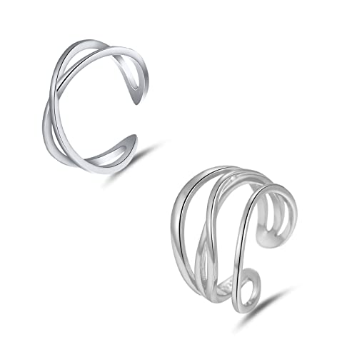 AOMIAO 2Pcs Anello Incrociato,Anello Regolabile per Donna Ragazze Gioielli,Anelli Impilabili,Anelli da Donna Bohemien Apertura Anelli,Gioielli Donna,Gioiello,Regalo per Amici,Donne,Uomini
