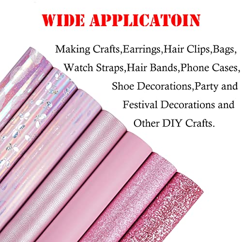 Aomry - Set di 7 fogli misti in ecopelle (20 x 30 cm), serie rosa, texture: glitter fini, grossi, olografica, effetto litchi, motivo farfalle, stampa bocca, tessuto per la realizzazione fiocchi e