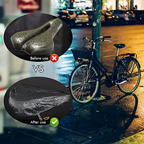 【Altamente Impermeabile】: Grazie al design impermeabile ottimizzato, questo coprisella per biciclette è dotato di una striscia impermeabile stabile con cuciture che massimizza l'effetto impermeabile. Resta impermeabile in qualsiasi condizione atmosferica e protegge la sella della bicicletta.