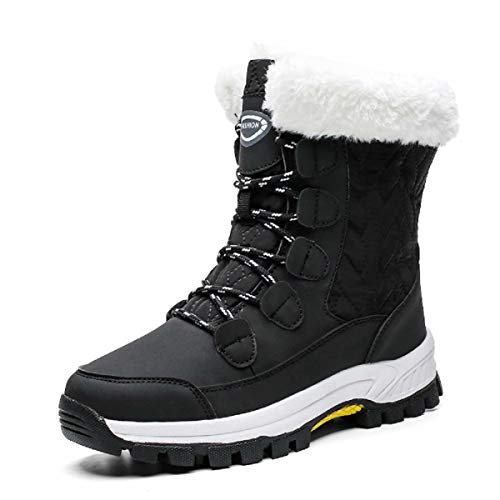 AONEGOLD Donna Stivali da Neve Inverno Impermeabile Pelliccia Fodera Neve Trekking Scarpe Piattaforma Antiscivolo Stivali da Escursionismo 8828 Nero Taglia 35