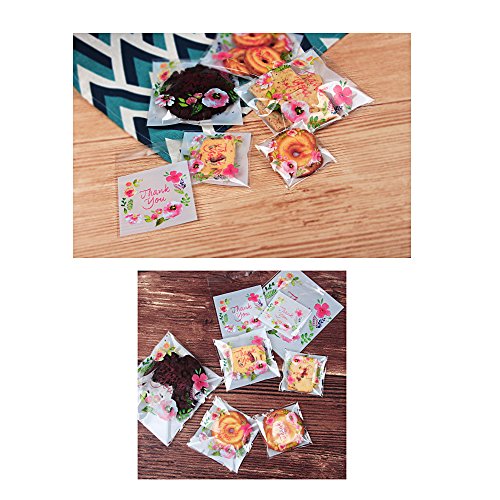 AONER 200pz Sacchetti Bustine Sacchettini Plastica Alimentari con Striscia Adesiva per Bomboniera Dolci Alimenti Confetti Biscotti (100*Grandi+100*Piccoli)